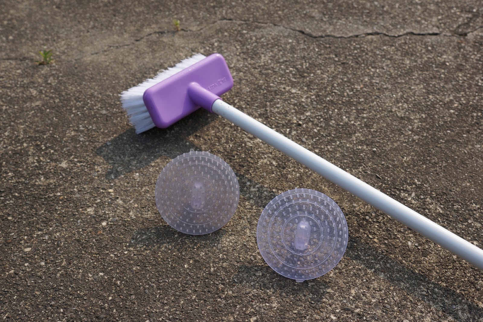 因此在昨晚買了長刷和手掌刷(看到傳統方式會累死人,我們總是要想想新法子)