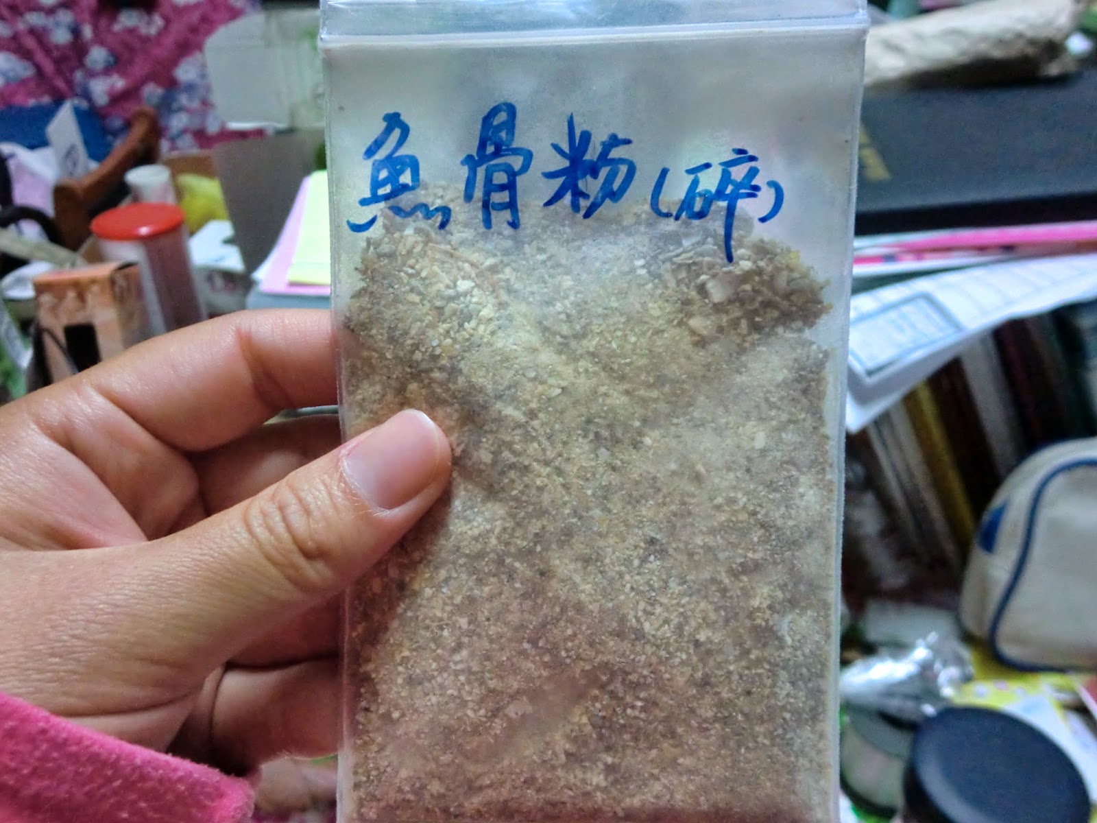 (原料商說,他還是第一次聽到有人要買魚骨粉當水稻的肥料,還真是不惜成本阿~~~)