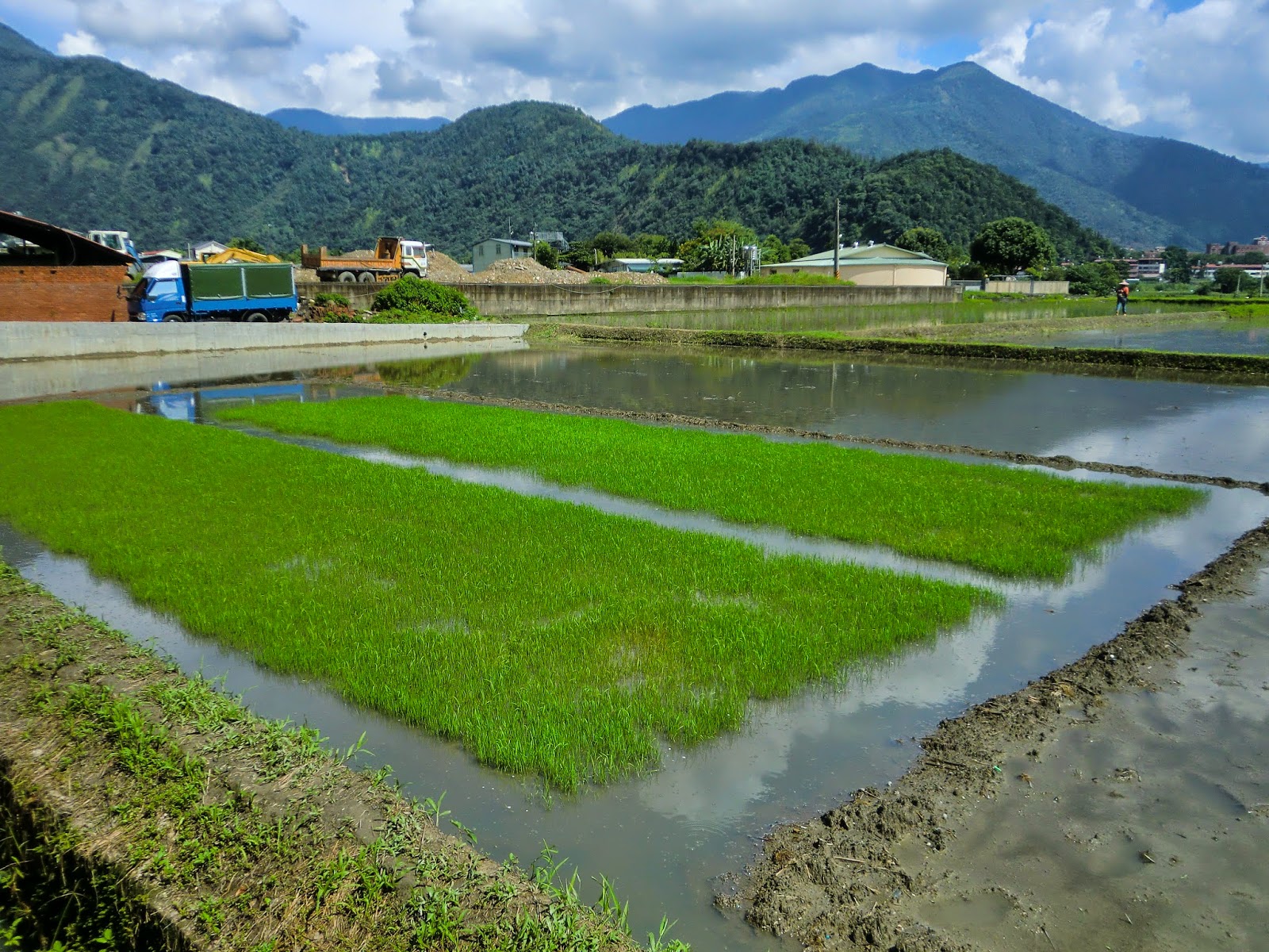 一期收割後因要拓寬出入口讓阿伯的新貨車能夠進出,二期的育苗遲到大暑(7/23)後才開始灑稻穀(二期插秧通常都是大暑之前要完成)。