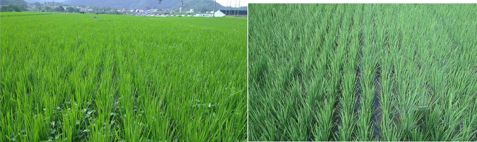 左邊是有長鴨舌草的田區;右邊是沒有鴨舌草的田區 |
