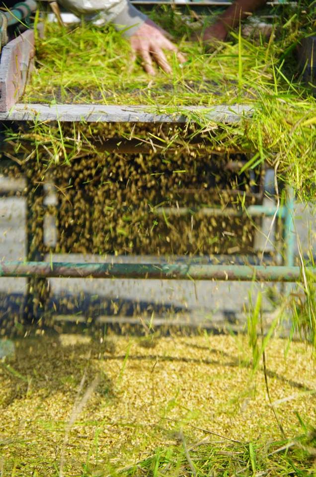 來幫忙割稻的在地朋友,抱著飽滿的稻穗,跟燦爛的笑容好搭配。親近土地的感覺,令人覺得心情很好。
