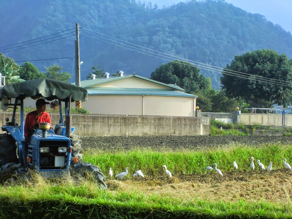 我們差不多收割完以後,阿伯也在這個時候翻土,白鷺鷥們開心的跟在阿伯的翻土車後面,像小跟班一樣。