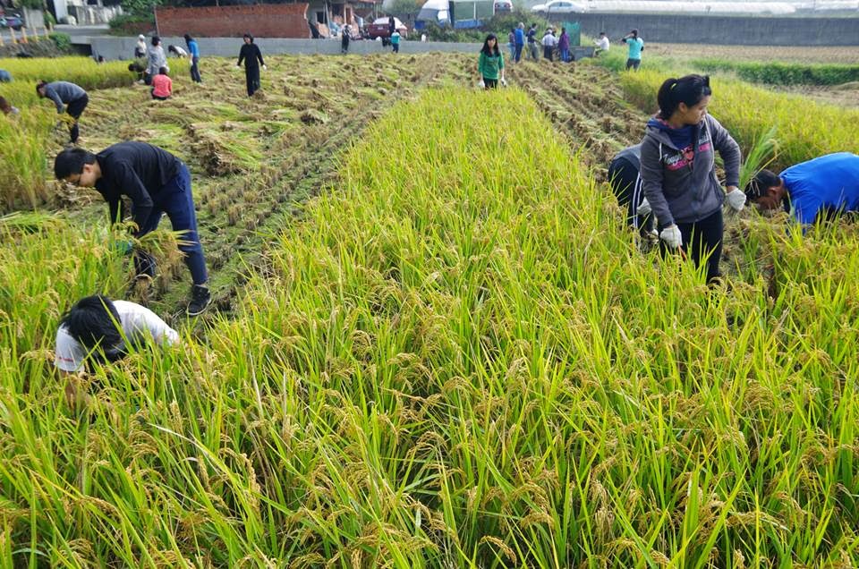 來幫忙割稻的在地朋友,抱著飽滿的稻穗,跟燦爛的笑容好搭配。親近土地的感覺,令人覺得心情很好。