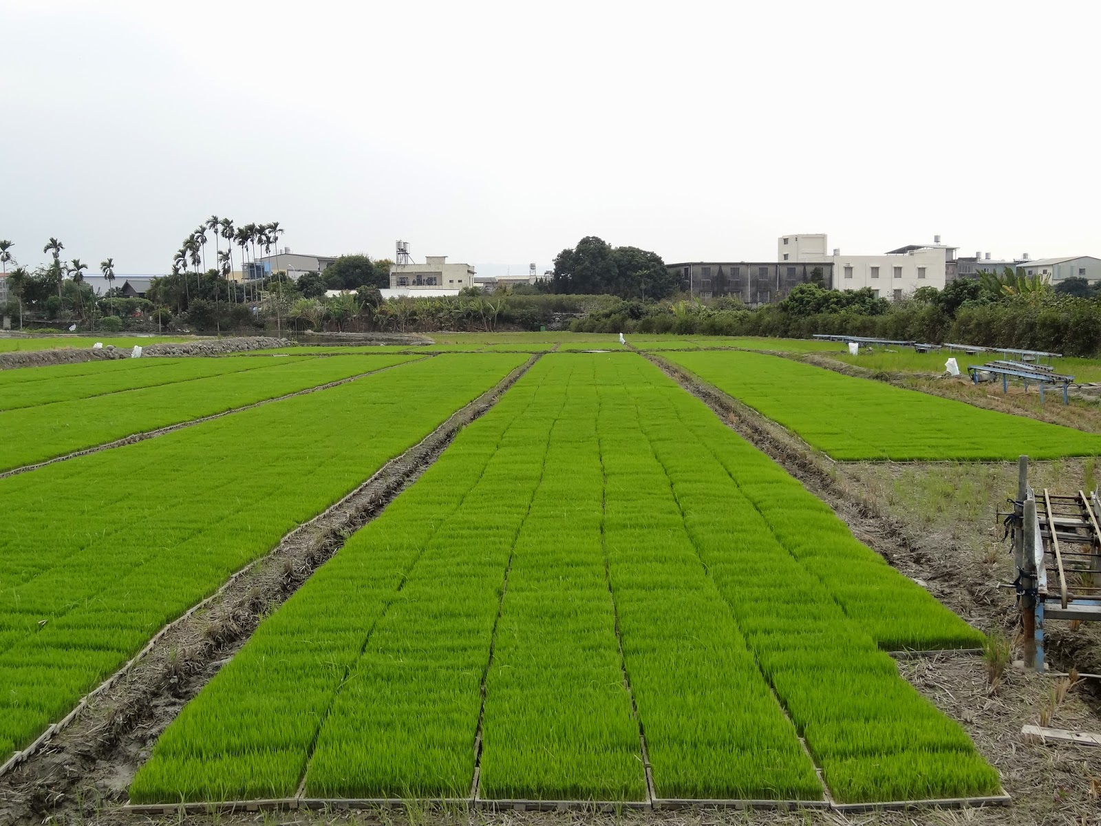 另外草屯的地租也很有趣,農民租地都是拿兩百公斤乾的稻穀來作租金,所以換算成前就是看當季的收購價格來算,也有人是收稻穀來算租金。老闆娘說他們是作生意的,所以租地給他們育苗的農民就有收的比較貴。此外也提到收割、翻土的價格也比埔里便宜許多,他們也認為埔里的農地過於小塊,許多人都不太愛翻小面積的地,這點可能還需要再驗證。順帶一提這邊插秧順著的節氣是立春,這邊大部分的稻田都已經插秧了,而埔里這邊要再雨水之前插秧,緯度更高一點的地方就要待到驚蟄時候才要插,突然腦海中浮現一個台灣地圖,每個地方都寫著節氣由下往上是每個地方要插秧時的節氣。看來種田這件是真的很講究作物生長的日期,突然很好奇二十四節氣到底是如何生成的,為何又與農緊密的扣上關聯,而遠方的沖天炮有響起,又有老農來找老闆娘要買秧苗了。