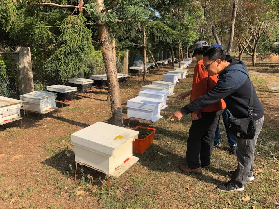 這次拜訪的是李振龍老師在農試所的養蜂場,他很熱心為我們介紹金門養蜂的現況,也說明自己為何想要養蜂。他說自己古寧頭人,也是馬來西亞的華僑,回金門旅遊的時候愛上了金門,剛好有機會在金寧國中擔任課輔老師,陪伴問題學生,另外也和學校的健美老師,成立健美隊,提供學生有機會有自信的舞台。